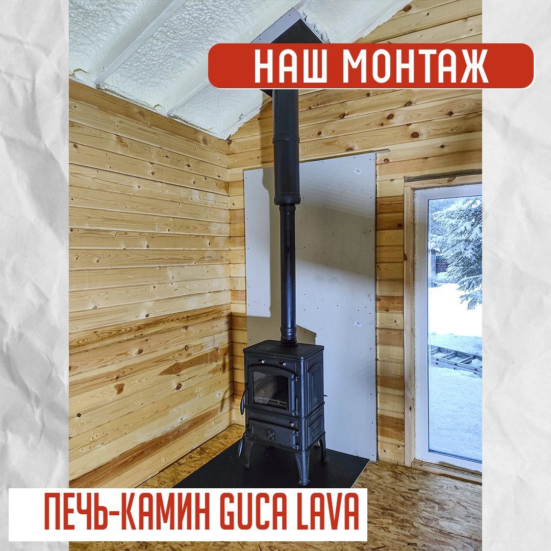 На фото 📸 представлен чугунный печь-камин Guca Lava. Монтаж проводила наша бригада специалистов. 👷