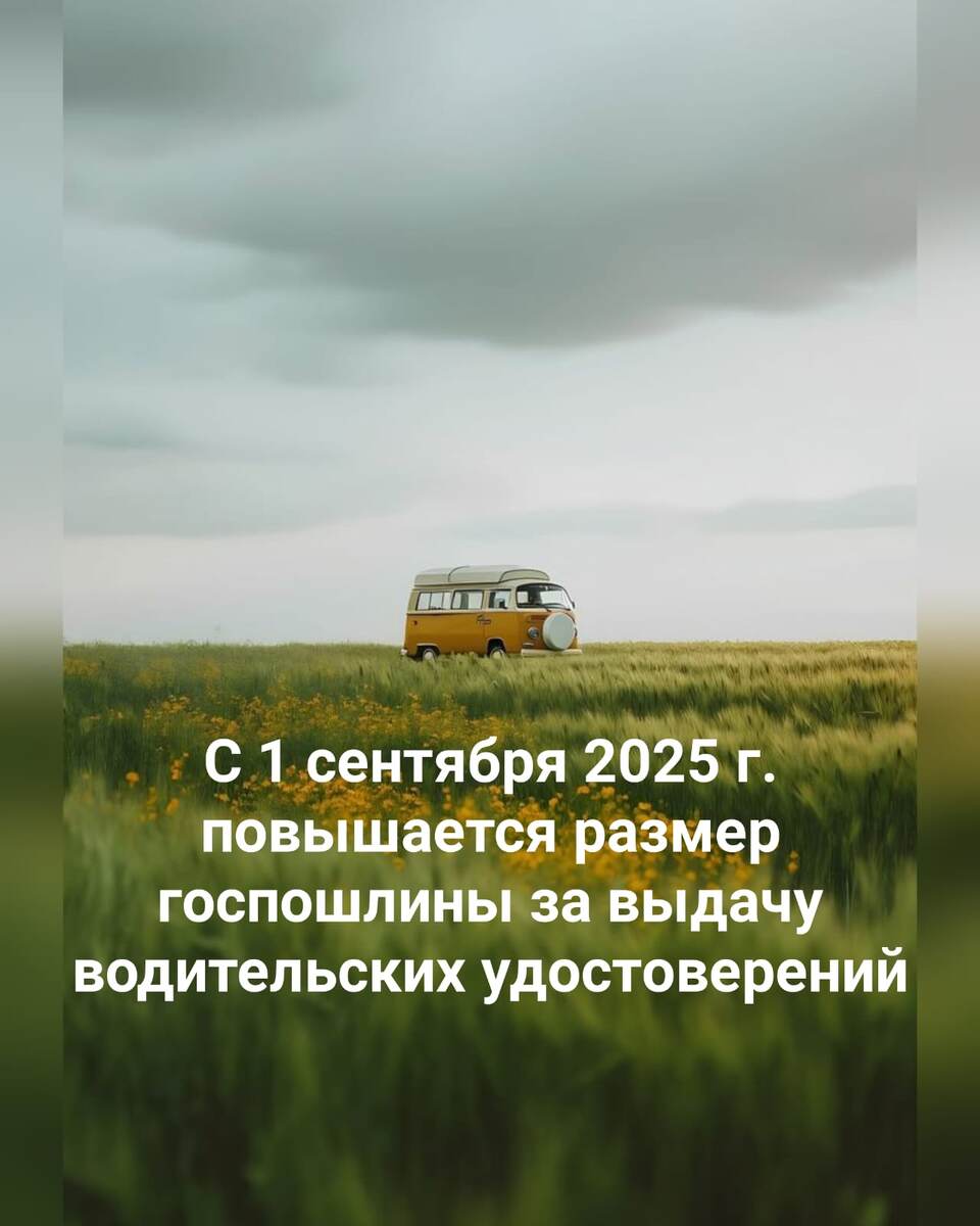 С 1 сентября 2025 г. госпошлина за выдачу ✴️национального водительского удостоверения увеличивается с 2 000 руб. до 4 000 руб., а за ✴️удостоверение нового поколения - с 3 000 до 6 000 руб. Изменения касаются как первичной выдачи, так и случаев замены или восстановления водительского удостоверения. За выдачу ✴️международного водительского удостоверения госпошлина увеличивается с 1 600 руб. до 3 200 руб. Госпошлина за выдачу ✴️государственных регистрационных знаков на автомобили, в том числе взамен утраченных или пришедших в негодность, вырастет с 2 000 руб. до 3 000 руб., за ✴️ бумажное свидетельство о регистрации ТС - с 500 руб. до 1 500 руб., за ✴️пластиковое свидетельство - с 1 500 руб. до 4 500 руб. ✴️Транзитные номера на автомобили и прицепы подорожают с 1 600 руб. до 2 500 руб. За оформление ✴️свидетельства о соответствии конструкции автомобиля требованиям безопасности - с 1 500 руб. до 4 500 руб., а за ✴️разрешение на внесение изменений в конструкцию - с 1 тыс. до 3 тыс. руб. Св