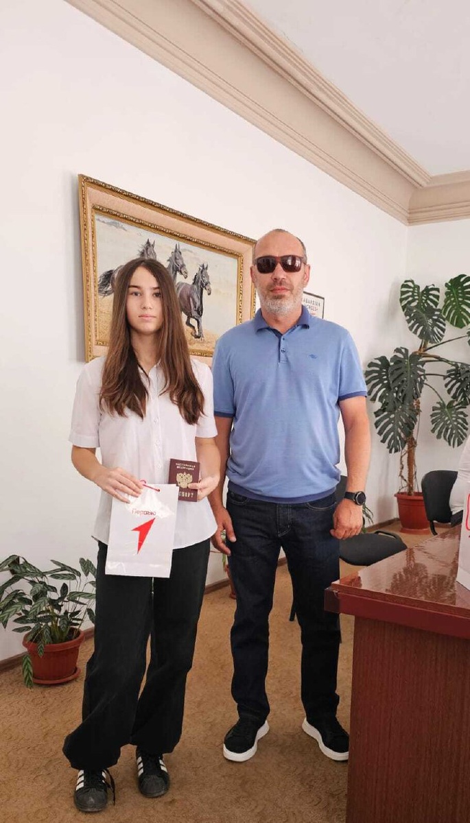 В торжественной обстановке глава администрации Егерухайского сельского поселения Руслан Брафтов совместно с местным отделением «Движения первых» Кошехабльского района вручил 5 юным жителям нашего аула главный в жизни документ – паспорт гражданина РФ.