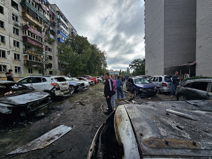Сегодня ночью Курск подвергся атаке украинских беспилотников. Больше всего пострадал дом по улице Союзная, 55-б — горели четыре верхних этажа. Жильцов эвакуировали. А всего, по предварительным данным, повреждено 11 домов и 50 автомобилей, которые были припаркованы во дворах, сообщил врио губернатора Курской области Александр Хинштейн. В результате атаки погибла 45-летняя женщина. Ещё 12 человек получили ранения, девять из них находятся в больнице. Иван ПРОХОРОВ, фото тг-канал Александра Хинштейна Постоянный адрес новости на сайте «Друг для друга» ~ https://dddkursk.ru/lenta/2025/08/15/121397/. Новости Курска за ~ 15 августа ~ август 2025 года.
