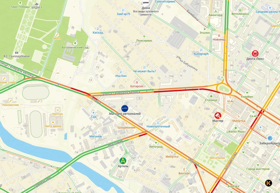 Все спешат домой, а город встал в пробку. Из-за дождя движение затруднено на многих улицах. В особенности жалуются на Генерала Белика, где идет ремонт, и на столпотворение на улице Байкальской. Скриншоты 2GIS 🟦Подписаться | Предложить новость