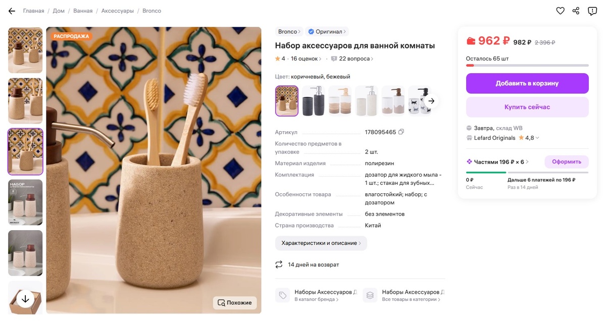 источником идей и хорошего настроения! Согласитесь, приятно, когда всё аккуратно разложено, а мелочи не захламляют пространство. Для этого нужны не только чистота и ремонт, но и правильные аксессуары. Они помогают держать всё под рукой, экономят место и делают интерьер красивее. Я собрала подборку полезных и стильных вещей, которые помогут превратить вашу ванную в маленький домашний SPA-уголок. Простой и стильный набор, в котором есть дозатор для жидкого мыла и стакан для зубных щёток. Выполнен из прочного материала, который легко моется и не впитывает запахи. Лаконичный дизайн подойдёт под любой интерьер ванной комнаты. Дозатор обеспечит удобный доступ к мылу, а стакан поможет поддерживать порядок. Такой набор не только полезен, но и украшает пространство. Подойдёт и для себя, и в качестве подарка. Артикул: 178095465 Угловой стеллаж из массива дерева - это и