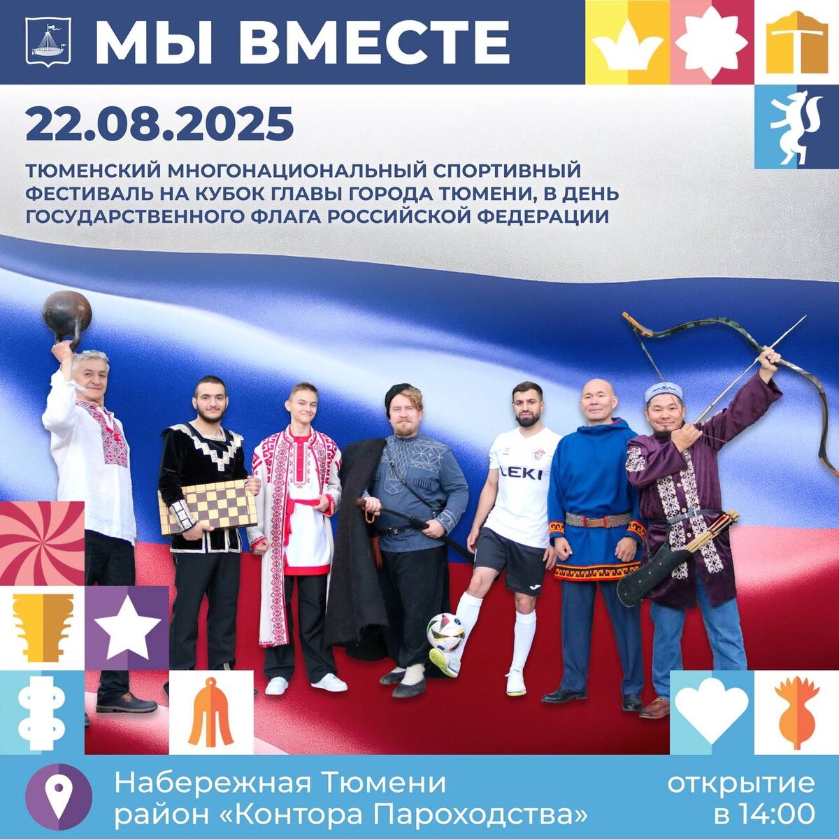 Тюменцам предлагают ощутить вкус национального спорта Первый всероссийский многонациональный спортивный фестиваль стартует в Тюмени 22 августа. Мероприятие впервые объединяет представителей десятков этнических сообществ, проживающих в областной столице, в общей культурно-спортивной акции, призванной продемонстрировать разнообразие и богатство народных традиций. Главная цель фестиваля — сохранить традиции, объединить людей и приобщить их к занятиям спортом. Официальное открытие начнется в 14:00 возле мультицентра «Контора пароходства» (ул. 25 Октября, 23А). Председатель комитета по межнациональным отношениям администрации города Тюмени Платон Осоткин отметил высокую активность подготовки фестиваля: «Мы ожидаем порядка двух с половиной тысяч участников и зрителей. К участию приглашены военнослужащие-участники спецоперации, семьи военных, ученики спортивных школ, активисты общественных движений и все желающие горожане. Ярким моментом фестиваля станет представление национальных спорт