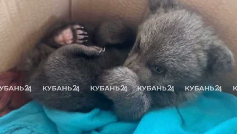 На Кубани семья спасла брошенного матерью в лесу медвежонка