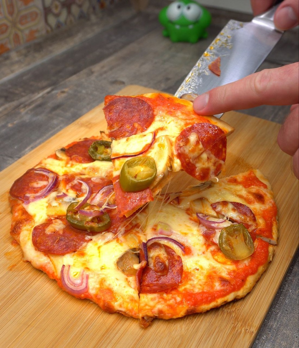 Многие считают, что пицца — это калорийная бомба, от которой талия исчезает быстрее, чем кусок со стола. Но этот рецепт ломает все стереотипы. Пицца без теста — это полезная альтернатива классической, ведь в её основе нет ни грамма муки! Вместо теста мы используем нежную куриную грудку, а это значит, что блюдо можно смело включать даже в рацион правильного питания. Такая пицца получается сочной, с золотистой и плотной основой, которая прекрасно держит начинку. А самое приятное — вы сами выбираете, что на неё положить: от классического пеперони до более лёгких овощных вариаций. Основа: Томатный соус: Начинка (вариант 1): Начинка (вариант 2, детская):