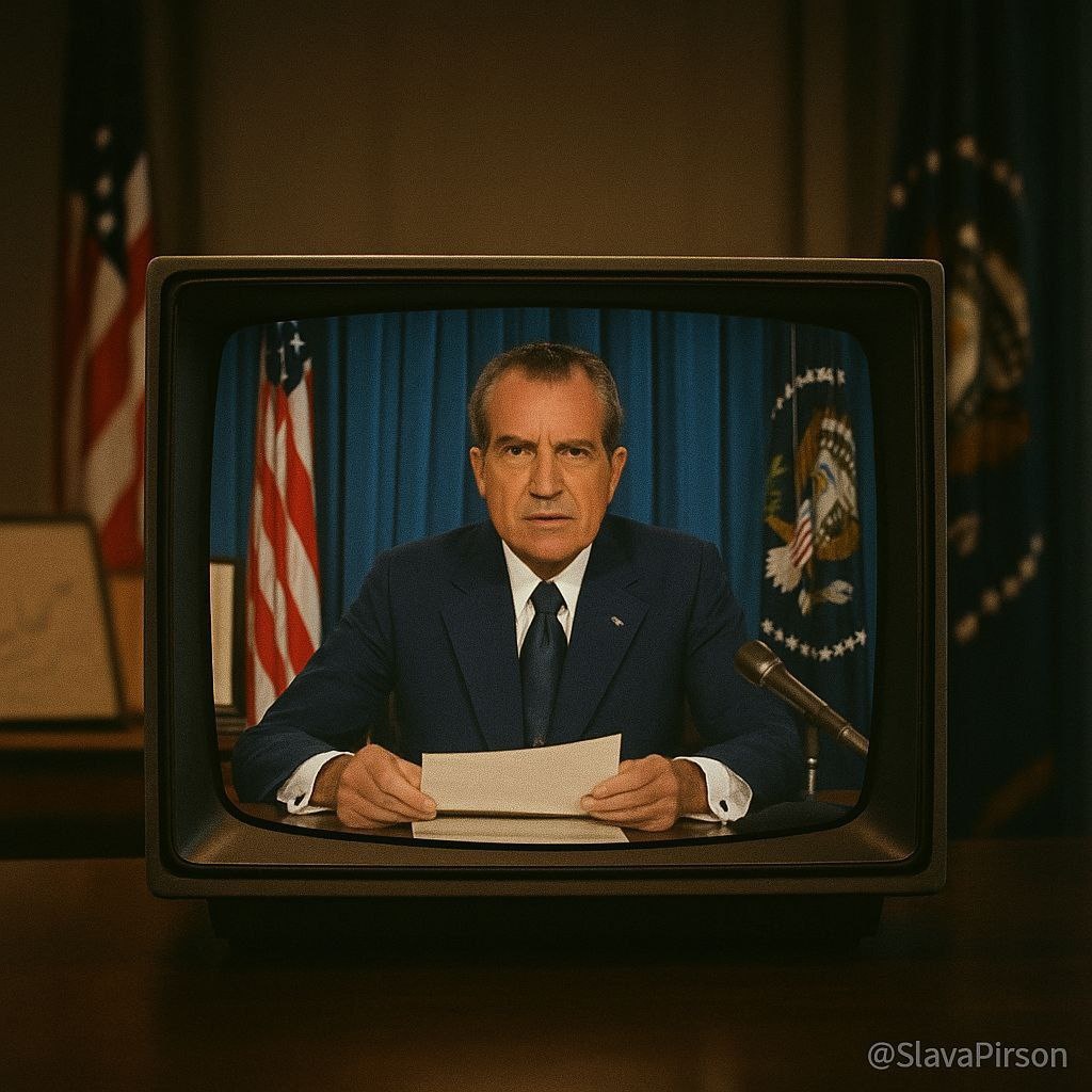 Вашингтон, 15 августа 1971 года. «Шок Никсона» — США прекратили обмен долларов на золото, финал системы Бреттон-Вудс.