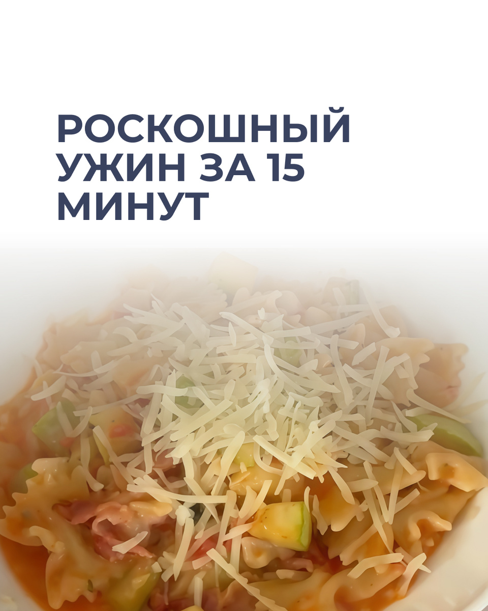 Отправьте пасту в подсоленную кипящую воду. Варите до состояния аль денте — это когда она уже мягкая, но немного упругая в центре. - Обжарьте бекон и кабачки