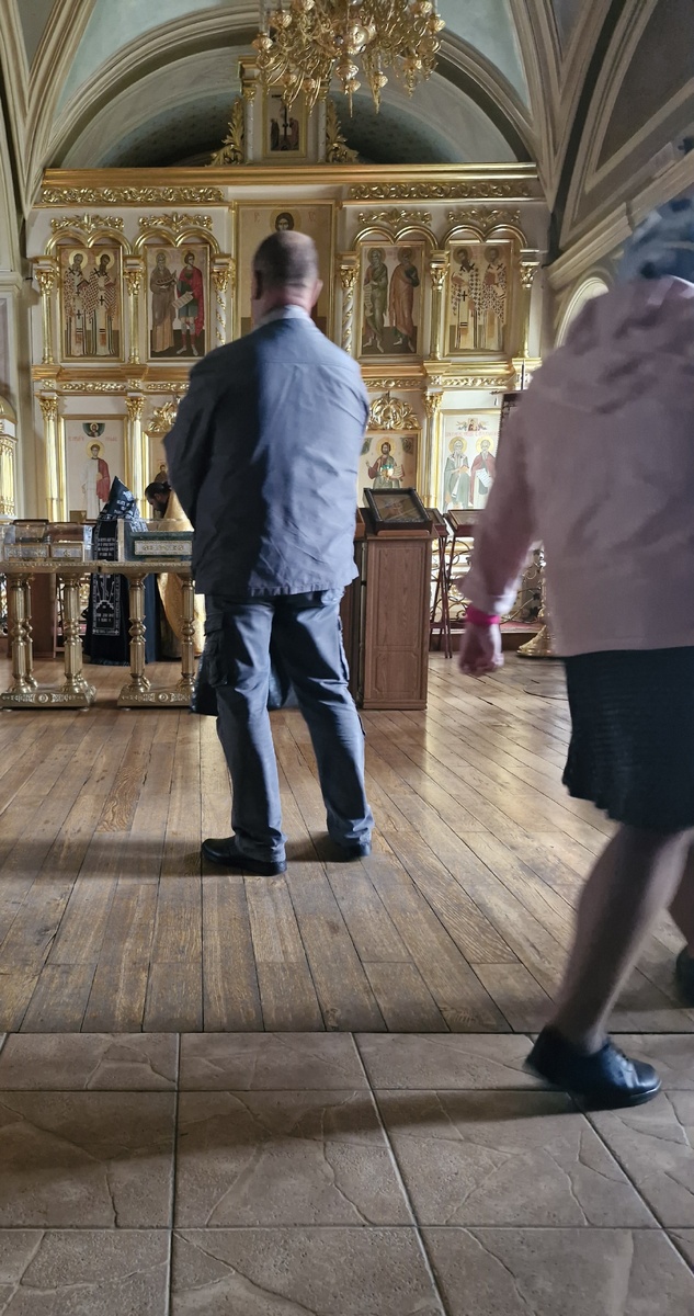 Угол я себе облюбовала замечательный: рядом мощи Зосимы Верховского (не уверена, что именно мощи, но его уголок). Еще там шикарная лавочка, что мне с моей травмированной ногой актуально ( церковь то церковью, но заботиться о себе надо и усадить себя -задача важная), бак со святой водой и чашечками (считай кулер), там видно алтарь, потому, что храм удлинённый в ширину и в этой части храма проходит исповедь, то есть можно ждать своей очереди комфортно. Понятно, что я там обосновалась.