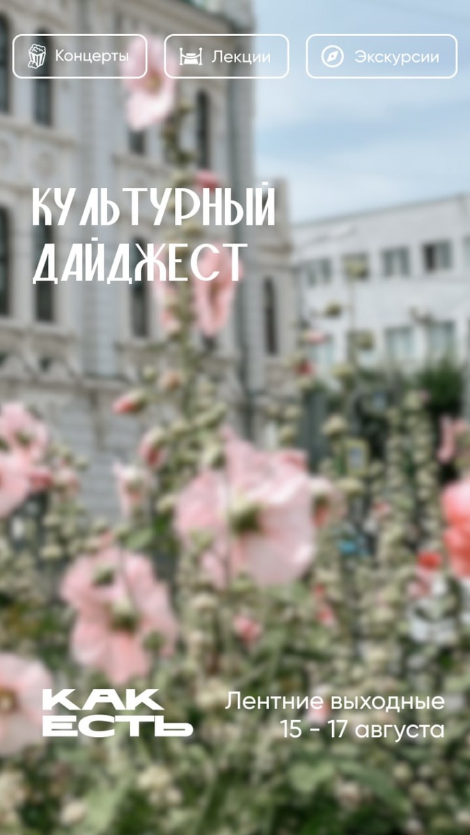 Культурный дайджест 15-17 августа Планируй выходные с нашей афишей 👈 #дайджест