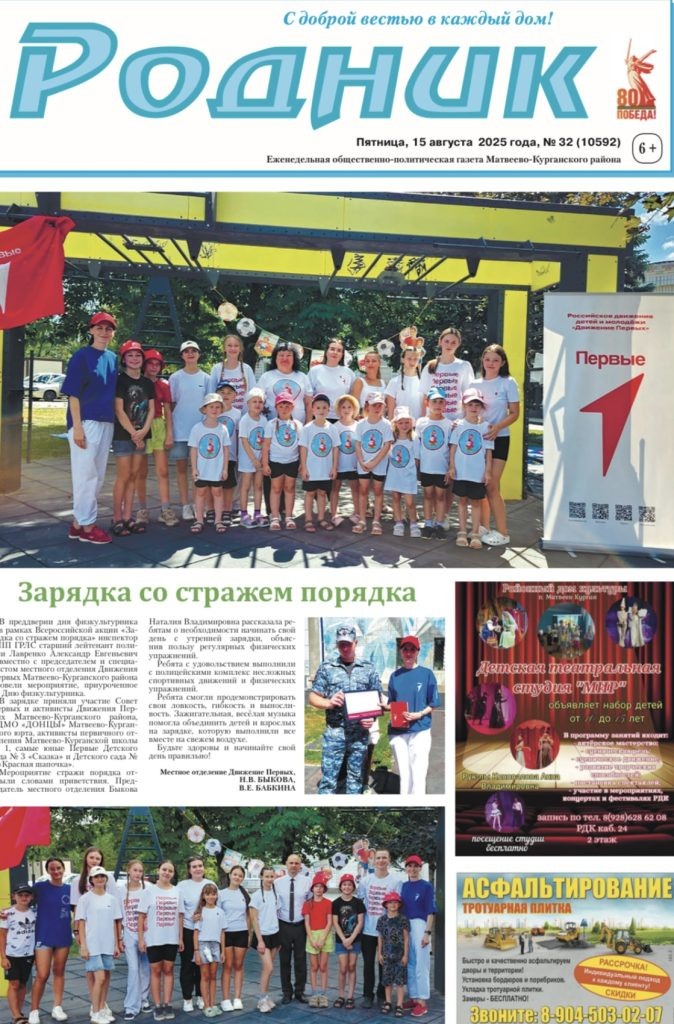 В рамках Всероссийской акции «Зарядка со стражем порядка» инспектор НПП ГРЛС старший лейтенант полиции Лавренко Александр Евгеньевич совместно с председателем и специалистом местного отделения Движения Первых Матвеево-Курганского района провели мероприятие, приуроченное ко Дню физкультурника. Стр. 1. В Администрации Матвеево-Курганского района состоялось заседание административной комиссии. Стр. 2. Под председательством Николая Анцева состоялось заседание Собрания депутатов Матвеево-Курганского района,. Стр. 2. «Травяной чай: как вырастить свой травяной сбор?». На вопросы отвечает эксперт, главный специалист органа инспекции Донского филиала ФГБУ «ЦОК АПК» Владимир Косов. Стр. 6. В рубрике «Сад, огород» много полезной информации. Стр. 6 и 7. «Психологическая поддержка на школьном пути». Советы первокласникам, родителям и будущим выпускникам от практикующего психолога и психотерапевта с 20-ним опытом работы Хатуны Писаревской Стр. 8. Материалы наших читателей в рубрике «Народный корресп