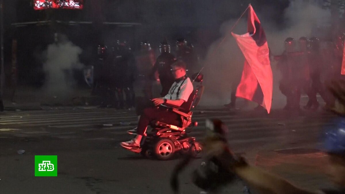 [ Смотреть видео на сайте НТВ ] В Сербии оппозиция снова вышла на митинги. Вторую ночь подряд на улицах крупных городов Сербии собрались тысячи человек. Манифестанты вели себя агрессивно. Они напали на полицейских, закидали их камнями и петардами. По последним данным, ранения получили более 40 страж правопорядка. Несколько десятков митингующих задержали. Минюст Сербии назвал беспорядки ударом по конституционному строю. Накануне протестующие разгромили здание правящей партии. Александр Вучич заявил, что манифестанты хотели сжечь заживо сотрудников. [ Смотреть видео на сайте НТВ ]