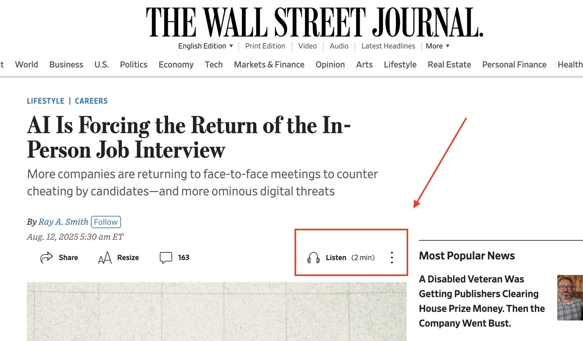 Теперь это факт, я проверила. Во всех крупных медиаизданиях в статьях есть генеративные аудио. Ранее писала, что уже в блогах компаний: ютуб, чатджипити видела, что внедрили. Пока не во всех СМИ, что я читаю есть, но стало появляться.