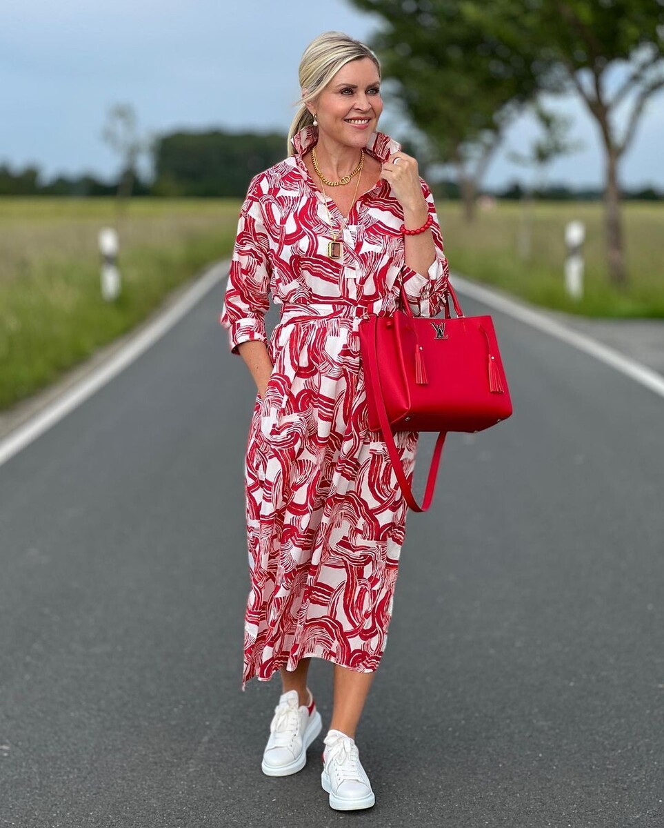 Платье-рубашка — это, прежде всего, вертикаль. А вертикаль вытягивает силуэт, «собирает» фигуру и делает образ стройнее даже без пояса.