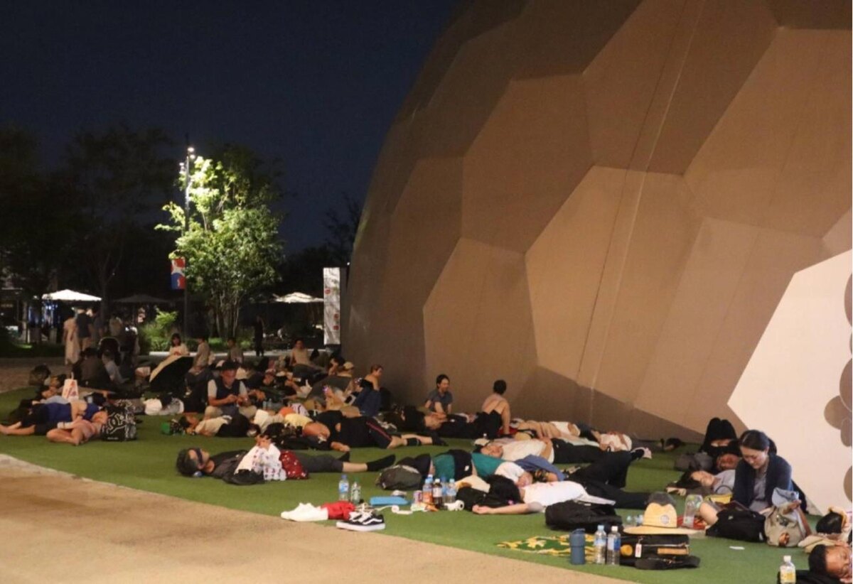 Около 30 000 посетителей застряли на выставке Osaka Expo из-за отключения электроэнергии линии Тюо в метро Осаки с 21:30 среды до 5:25 утра следующего дня. Многие посетители спасались от летней жары в павильонах мероприятия до утра четверга, 36 человек были доставлены в больницу.