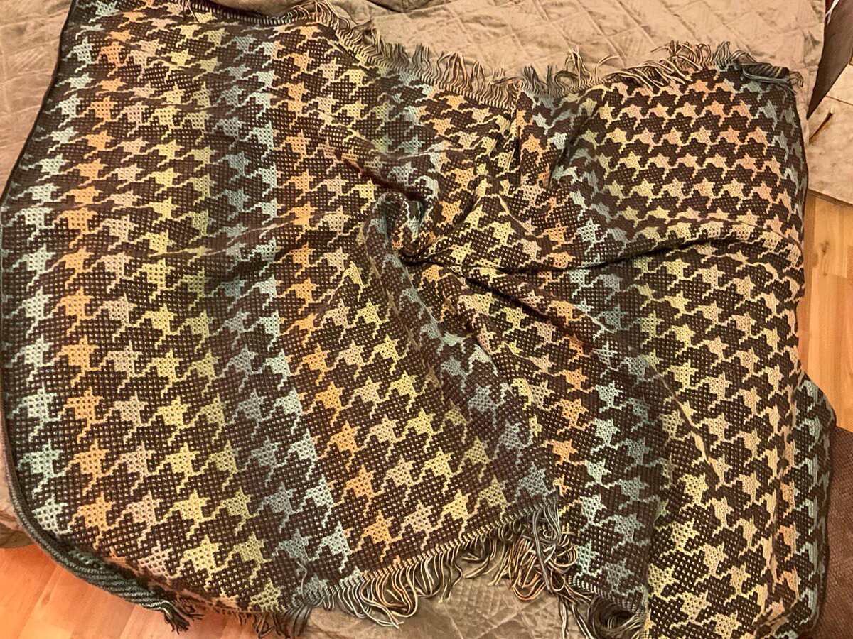 Гусиные лапки. Новости наших чатов Ольга связала плед узором «Гусиные лапки» (он же pied-de-poule)🔥 Это изысканный и узнаваемый декоративный элемент, который стал важным символом в мире моды. Ольга, большое спасибо! Ольга: «Всем добрый день! Закончила большой проект - плед «Гусиные лапки» - для очень брутального мужчины (поэтому и расцветка, и размеры соответствуют). Описание: размеры 150 х 190 см, вес 1,5 кг. Пряжа: Nako Boho коричневый около 10 мотков (400 м в 100 гр), Nako Angora Luks Color (810 м в 150 гр) около 3,5 мотков. Похожим набором пряжи я уже вязала плед «Квадрат в день». Результат порадовал, поэтому повторила. Крючок 2,2 мм. Плед получился тонкий, воздушный и очень тёплый. Сейчас решила довязать остатки пряжи от пледа на подушку этим же узором, но инверсией - из любопытства, как будут смотреться светлые лапки на тёмном)».