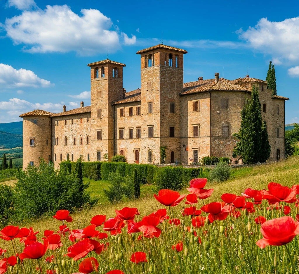 На северо-востоке провинции Ареццо, на холме высотой 437 метров расположен городок Поппи с населением муниципалитета около 5800 жителей. Поппи внесён в список самых красивых деревень Италии. История городка тесно связана с замком Поппи, который принадлежал графам Гвиди, феодалам Казентино. Замок известен еще с 1166 года и до сих пор сохранил свой средневековый облик. В 1261 году были построены нынешние стены с пятью воротами в город, которые теперь сокращены до четырех. Данте Алигьери останавливался в замке Поппи сначала в 1307, а затем в 1311 году. Но в 1440 году хозяин замка Франческо Гвиди предал Флоренцию и вступил в союз с герцогами Милана Висконти. Тогда флорентийская армия завоевала Поппи, и Гвиди отправились в изгнание. Сегодня в залах замка проходят многочисленные выставки произведений искусства, конференции и музыкальные представления. Внутри сохранились работы из глазурованной терракоты делла Роббиа и фрески XIV века работы ученика Джотто Таддео Гадди. Если прогуливаться