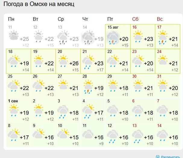 По данным сайта Gismeteo, дожди в Омской области будут идти практически ежедневно вплоть до конца августа. Единственным исключением станет, по предварительным расчетам, 24 августа. Перспективы на сентябрь также неутешительны. Долгосрочный прогноз указывает на ежедневные дожди различной интенсивности — от слабых до сильных. Немного передышки синоптики обещают лишь ближе ко второй декаде сентября, когда ожидается около трёх относительно сухих дней. Температурный фон будет постепенно снижаться. На следующей неделе воздух ещё может прогреться до +26°C, а в сентябре дневные максимумы не превысят +19°C. Ночью столбики термометров будут опускаться до +9°C. Ранее Гидрометцентр России прогнозировал для Омской области аномально тёплый сентябрь. Новые данные указывают, что, несмотря на возможное превышение средних температур, месяц будет характеризоваться обильными осадками. Читайте также на портале Om1.ru Лето вернётся в сентябре: в Гидрометцентре дали прогноз на осень в Омске