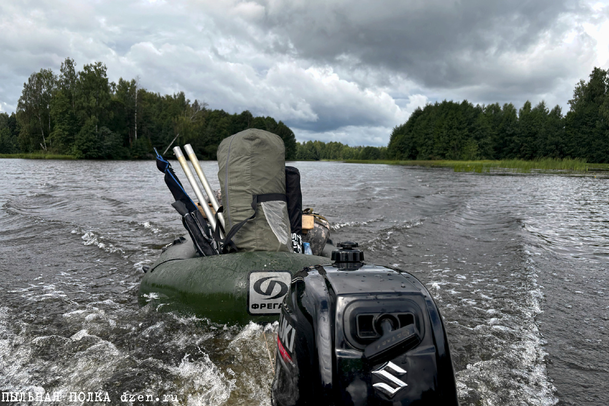 Заброска подальше от цивилизации осуществлялась на двух лодках «Фрегат», моторной и гребной соответственно. Подгоняемые прогнозом о скором неминуемом дожде, лагерь поставили стремительно. На фото выше в центре самый лучший шатёр Fortuna 300, который надёжно укрыл все вещи от непогоды. И вы, конечно, спросите: а почему он вдруг самый лучший? Отвечаю: потому что он ставится и сворачивается одним лицом в течение трёх-пяти минут. Надёжность конструкции проверена временем, пользуюсь им лет пятнадцать, и непогодой, которой никогда не удавалось застать наши предприятия врасплох. На фото ниже моя палатка Ferrino Chaos 2. Пользуюсь ей с 2007. Пару лет назад пришла в голову мысль о том, что надо бы подновить снаряжение в связи с тем, что её тент начал слегка пропускать воду. Залез в инет и, слегка обалдев от цен, просто обработал верх и днище водоотталкив