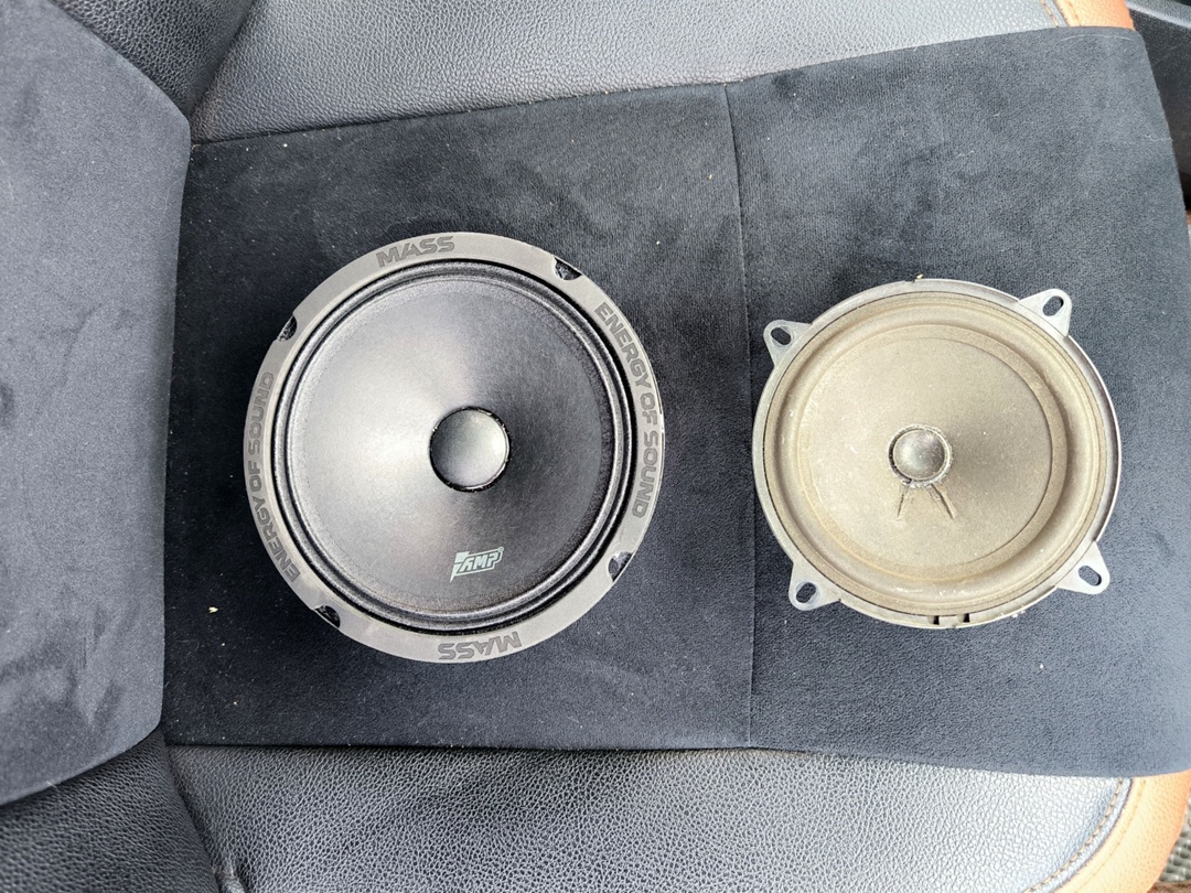 Так как у меня есть в наличии и штатные динамики от моего Renault Duster и акустика AMP MASS FR65P120