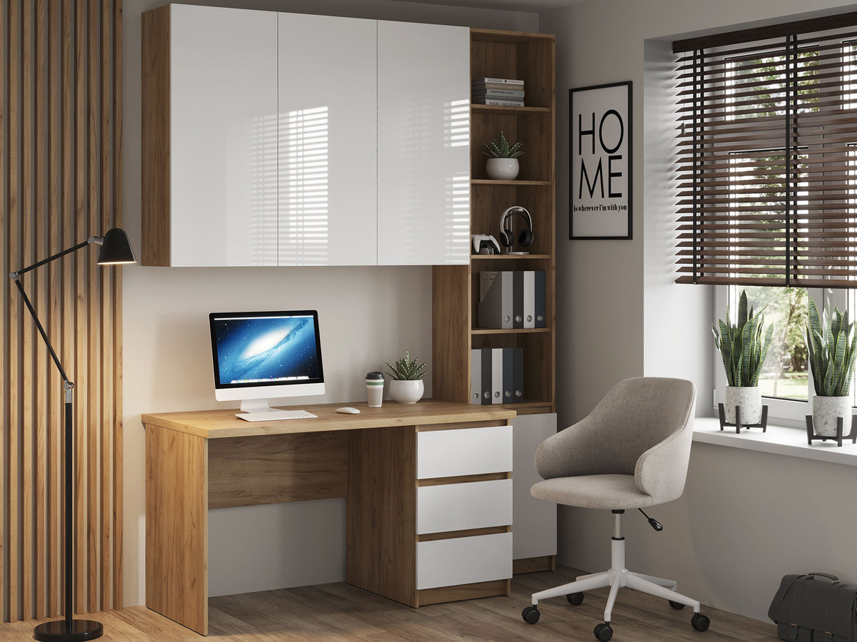 Материал, из которого сделана столешница, также влияет на комфорт. Матовая поверхность нейтрального оттенка (теплый белый, молочный, серый или древесный) — оптимальный вариант. Спокойные цвета помогают сконцентрироваться и комфортны для глаз. Глянцевая поверхность бликует под солнцем или лампой, что создает дополнительное неудобство и отвлекает внимание.