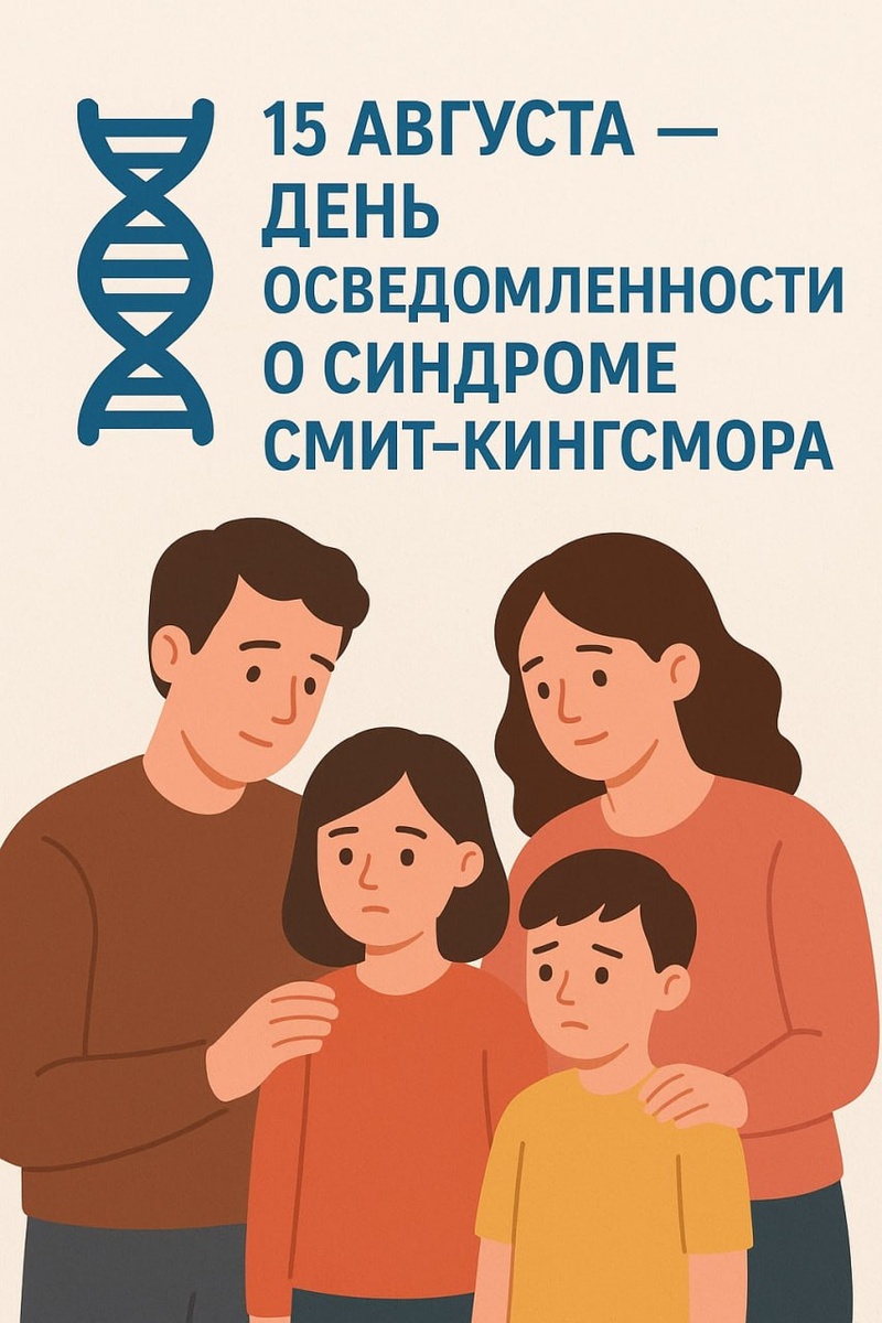 ☀️ Доброго утра! 🧬 15 августа — День осведомлённости о синдроме Смит–Кингсмора 💡 Многие думают: "Если болезнь редкая — значит, она меня не коснётся". Но редкие заболевания — это не только статистика, а реальные семьи, которые каждый день сталкиваются с диагнозом, о котором мало кто слышал. 🔎 Что это за синдром? Синдром Смит–Кингсмора — это сверхредкое генетическое заболевание, вызванное мутацией в гене MTOR. Этот ген управляет ростом клеток и развитием мозга. Мутация приводит к тому, что клетки растут неправильно, а это отражается на работе нервной системы и всего организма. 📋 Основные проявления могут быть: 🧠 Неврологические: задержка развития, судороги, нарушение сна, снижение мышечного тонуса, проблемы со слухом и зрением. 👀 Физические: большая окружность головы (макроцефалия), особые черты лица, быстрый рост, проблемы с регуляцией температуры, высокий болевой порог. 🗣 Поведенческие: аутизм или аутистические черты, СДВГ, тревожность, ОКР, проблемы с речью. 🍽 ЖКТ: запоры,