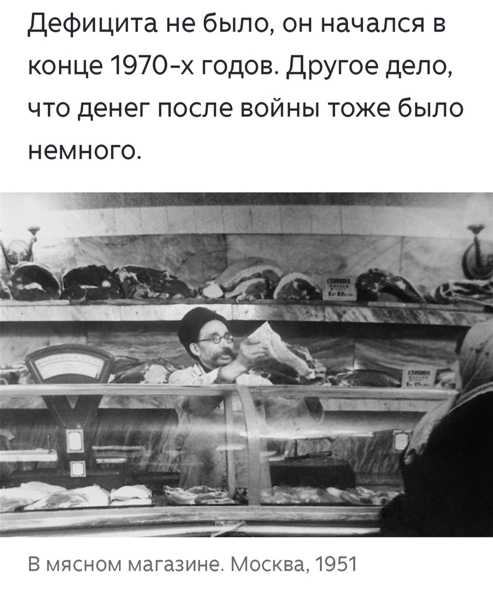 Своё детство я помню, как череду очередей. За "молочкой", за картошкой, за вещами. "Отмечаться" в очереди за билетами на теплоход, "доставать" ещё какие-то. Помню, мне было шесть, когда я самостоятельно пошёл к бабушке, которая в своём пуховом платке сидела в какой-то бесконечной очереди. Обнимаю сзади, а это не она. Бабушка уже ушла домой, я её потом догнал. Так мы и жили. И это была Москва, хоть и не центр. Когда же мы ехали в другой город, то запасали продукты загодя. Все знали, что "в Вольске мяса и масла нет". Дефицит. Недавно я вычитал, что всё это началось только в конце семидесятых. А до этого было нормально. Помню ещё, как ехали из Питера, от другой бабушки, в деревню на Псковщину, и обычную варёную колбасу везли палками. Помню, как её потом там жарили кругляшами. Это была середина 1980-х. В деревне собирали грибы, ягоды. С хлебом проблем не было, шли пешком в райцентр и покупали, сколько надо было. Говорили, что кто-то даже свиней им кормил. После начала кооперации стало