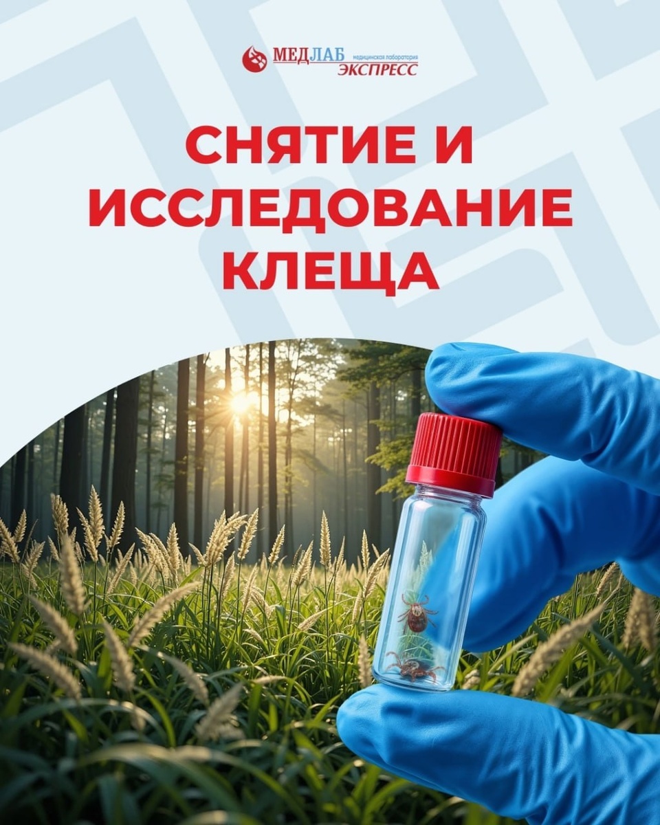 🪲В Пермском крае до сих пор высокая активность клещей, зарегистрировано более 26 тыс. обращений, из них более 4 тыс. - дети. Больше половины случаев - это клещи, пойманные на придомовых территориях. В случае укуса клеща, необходимо его удалить, сохранить в специальном контейнере и обратиться в медицинскую организацию. Наши специалисты смогут снять клеща прямо на заборном пункте. Почему важно сдать клеща на исследование? Клещи могут быть носителями различных инфекций, включая клещевой энцефалит и боррелиоз (болезнь Лайма). Проведение исследования позволит своевременно выявить наличие возможных инфекций и принять необходимые меры по лечению. Исследование клещей: 15.33.03 ПЦР-определение РНК/ДНК возбудителей инфекций, передающихся иксодовыми клещами (клещевой энцефалит, боррелиоз, анаплазмоз, эрлихиоз) – 1050 рублей Стоимость снятия клеща - 200 рублей Срок готовности исследования: 24-48 часов 240-40-40 8-800-222-20-40 (единый телефон для областных пунктов и пунктов Перми) www.medlab