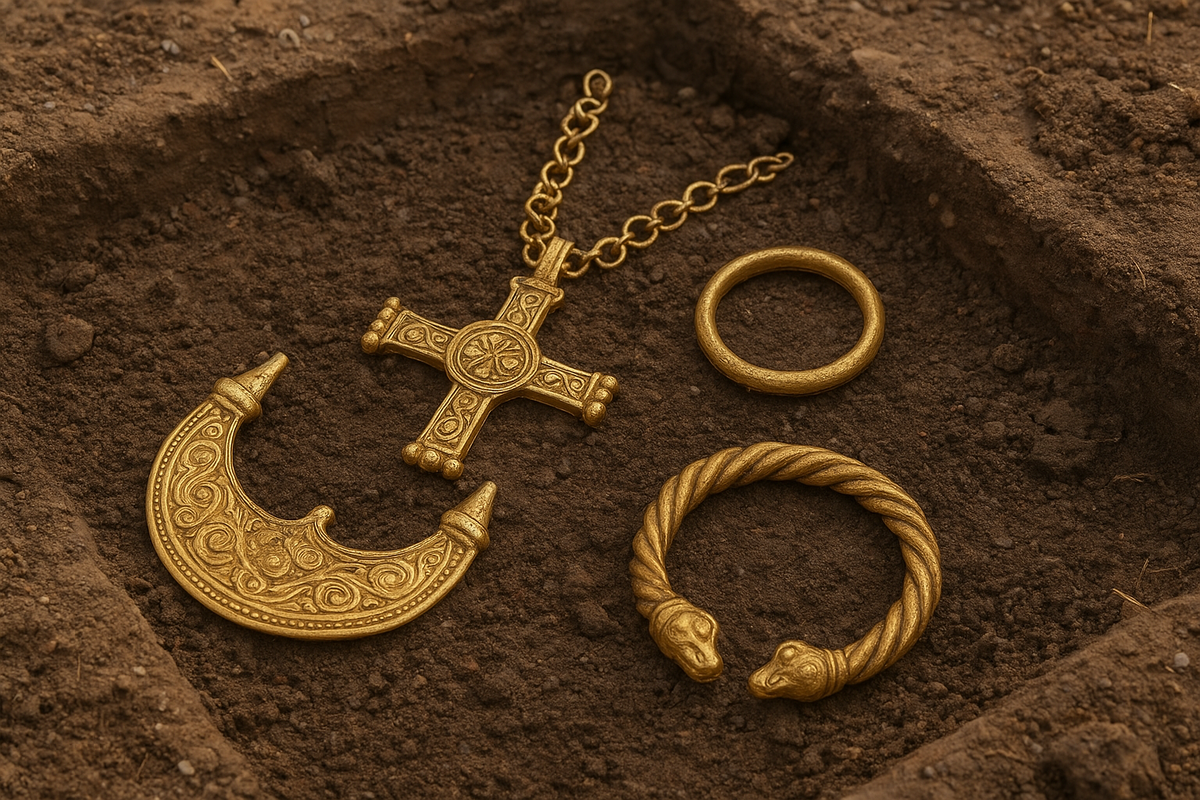 В графстве Стаффордшир два друга вышли на знакомое поле, где, казалось, уже всё перерыли. Один работал с металлоискателем Minelab CTX 3030, другой — с XP Deus. Сильный, «глухой» сигнал, типичный для массивного золота, заставил остановиться. Под слоем земли обнаружились золотые подвески, фрагменты украшений и монеты VII века. Позже археологи оценили находку в более чем 300 тысяч фунтов.