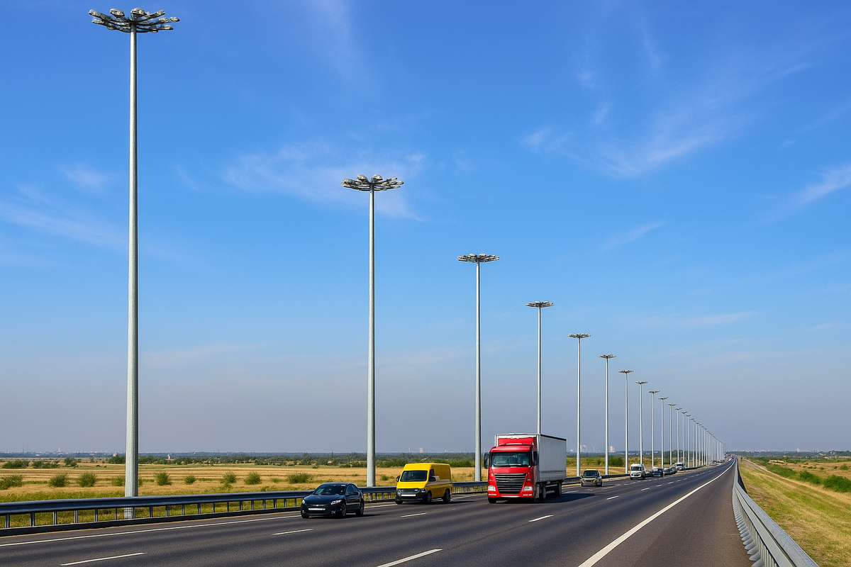 Высота ОВС подбирается в зависимости от задач освещения. Например, для автомагистралей достаточно мачт высотой 20–25 метров, а для аэропортов или портов могут потребоваться конструкции высотой 40–50 метров.