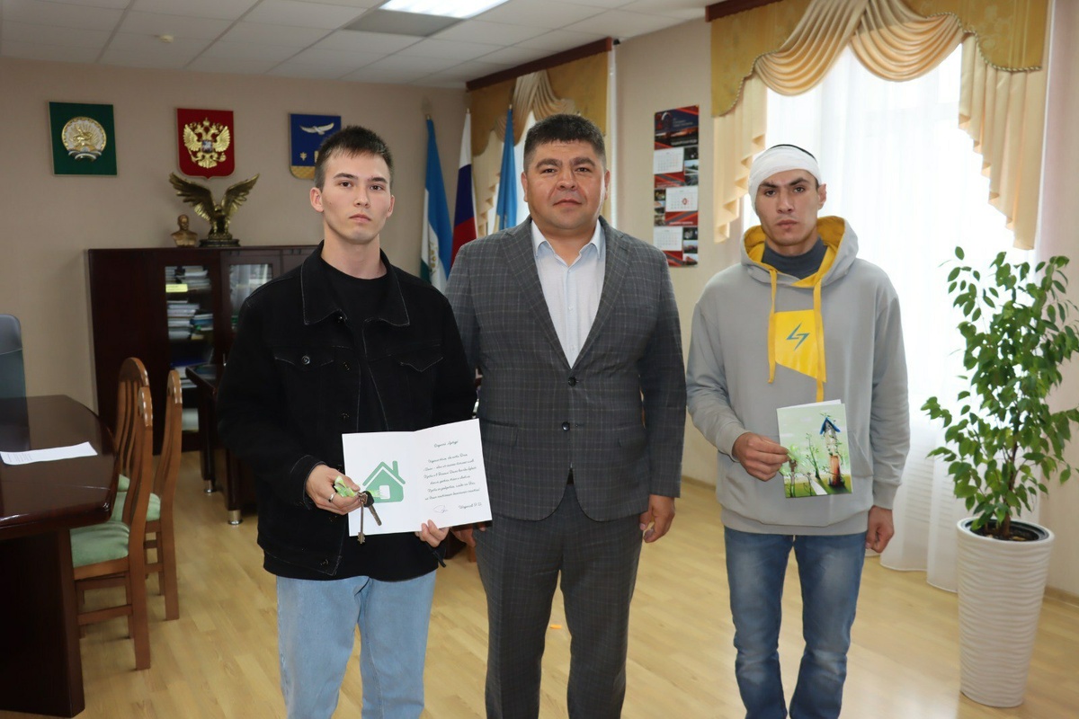 Урал и Артур, выпускники Акъярского горного колледжа, стали обладателями заветных ключей от собственных квартир В администрации района состоялось вручение ключей от квартир благодаря государственной программе по обеспечению жильем детей-сирот и детей, оставшихся без попечения родителей. "Артур уже трудится в горнорудном предприятии, Урал как раз трудоустраивается. Впереди у ребят – самые приятные хлопоты. Переезд и обустройство нового жилья. От всей души желаю, чтобы эти квартиры стали для них не просто жильём, а настоящим домом, наполнившимся счастьем, уютом и семейным теплом", - пишет в соцсетях глава администрации района Рустам Шарипов. Источник: https://t.me/SharipovRD