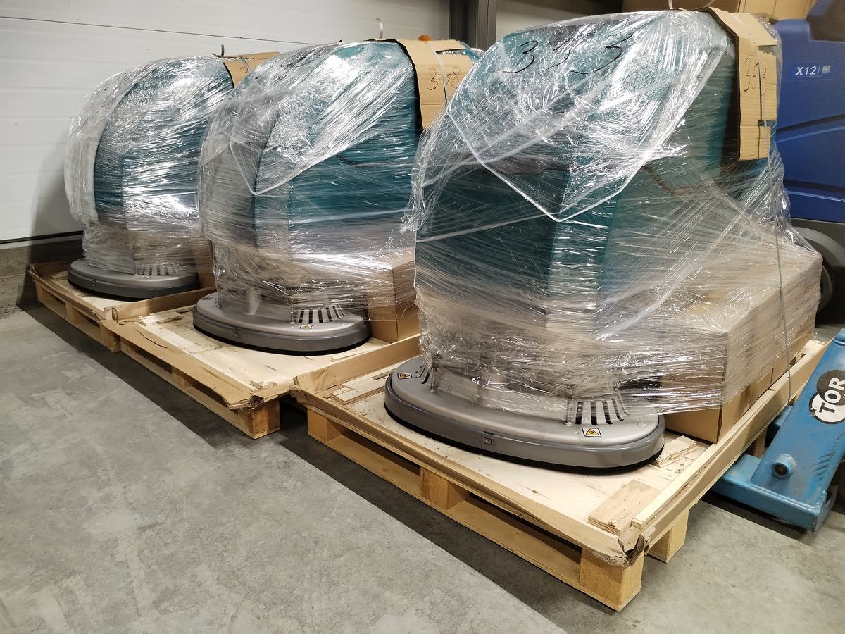 На распределительных центрах сети «Красное & Белое» будет работать сразу 43 поломоечные машины Wellland FD70. Техника распределяется по объектам по всей стране — отгрузка проходит партиями, согласно согласованному графику. Первые шаги в проекте были сделаны ещё в прошлом году. Тогда клиент заказал пилотную партию из 7 машин, чтобы протестировать оборудование в реальных условиях. Уборка проводилась на складах в Подольске. Машины показали себя с лучшей стороны — надёжно справились с задачами при ежедневной эксплуатации. После успешного теста было принято решение масштабировать проект: в августе 2025 года стартовала отгрузка основной партии. Первая поставка — 9 машин (на фото часть из них) — уже подготовлена к отправке. Wellland FD70 — это одна из самых крупных толкаемых моделей в ассортименте Wellland. Машина оснащена приводом хода, поэтому не требует физических усилий от оператора, несмотря на большие габариты. Обычно для таких объектов выбирают райдерные модели, но в данном случае клие