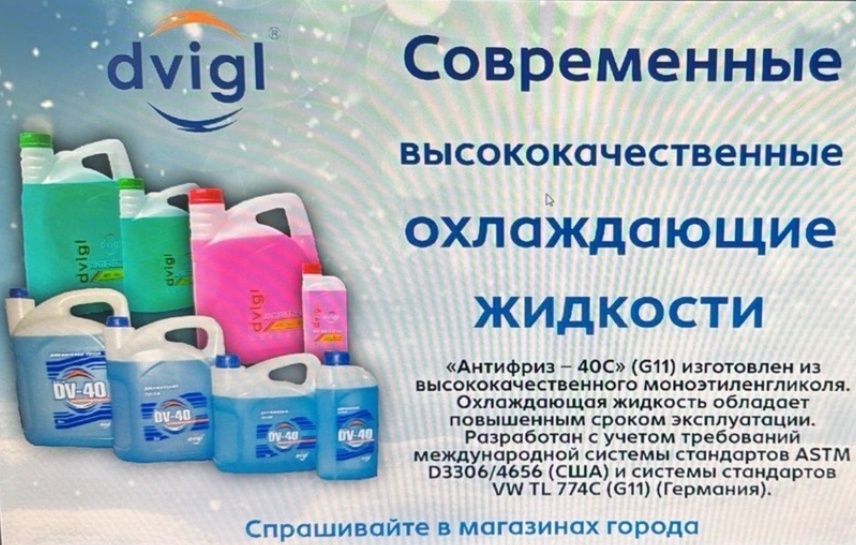 Современная охлаждающая жидкость изготовлена из высококачественного моноэтиленгликоля В лидирующей в сфере обслуживания транспортных средств компании в Костроме всегда в продаже высококачественный «Антифриз – 40С» от бренда «DVIGL». Спрашивать его можно во всех магазинах города Изготовлен «Антифриз – 40С» из высококачественного моноэтиленгликоля. Он обладает повышенным сроком эксплуатации и разработан с учетом требований международных систем стандартов США и Германии. Охлаждающие жидкости премиального качества можно купить во всех магазинах Автолиги. За новостями лидирующей компании в сфере обслуживания следите в официальной группе ВКонтакте или на официальном сайте. Реклама Erid — 2W5zFJbYddr ИНН — 4401111442 Рекламодатель — ООО «УПРАВЛЯЮЩАЯ КОМПАНИЯ «АВТОЛИГА»