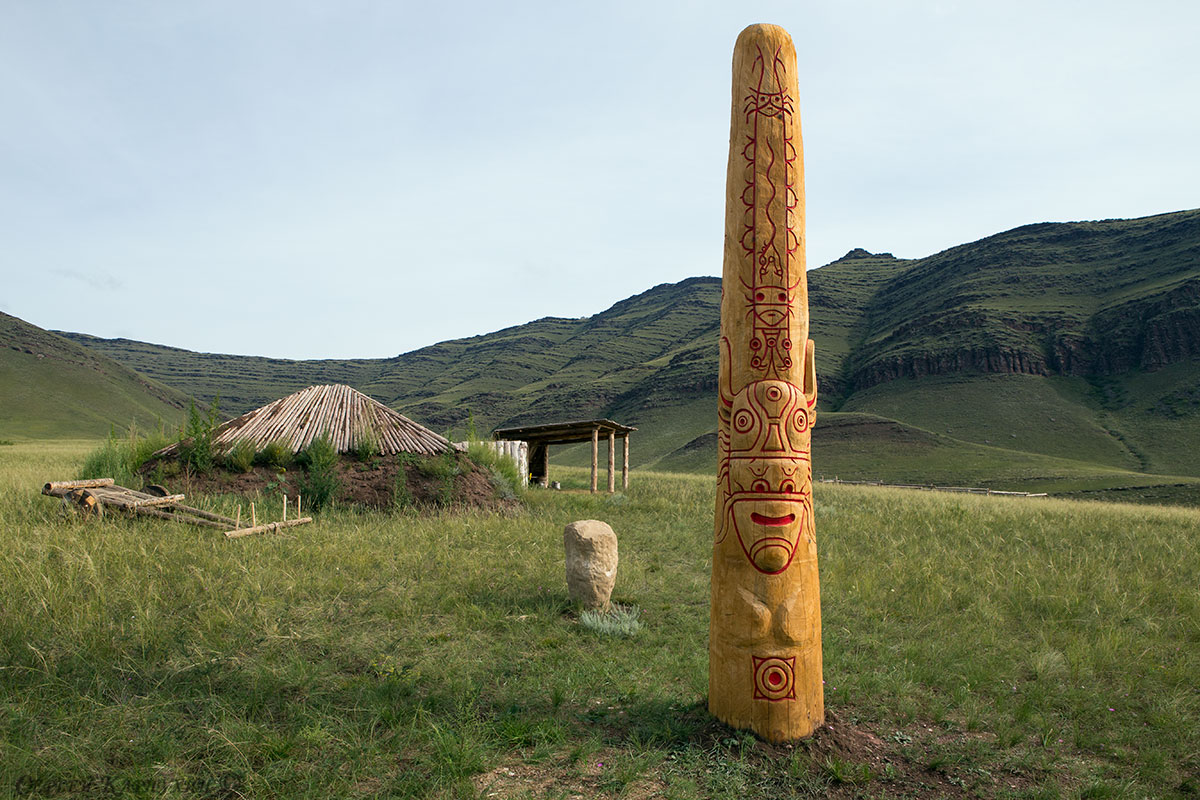 На фото коновязь (сарчын) - обязательный атрибут хакасской культуры. Сарчын - хранитель благополучия семьи, покровитель скотоводства, охоты и ремесла. По обычаю его нужно было установить еще до того, как будет собрана юрта.