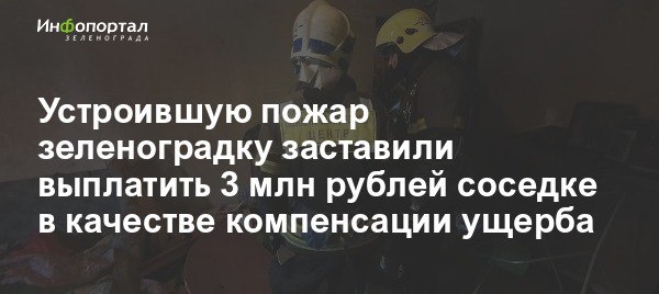Судебные приставы заставили устроившую пожар жительницу Зеленограда выплатить соседке, жилплощадь которой пострадала от огня, больше 3 млн рублей в качестве компенсации ущерба. Подробности в публикации Инфопортала. подписаться / обсудить в чате