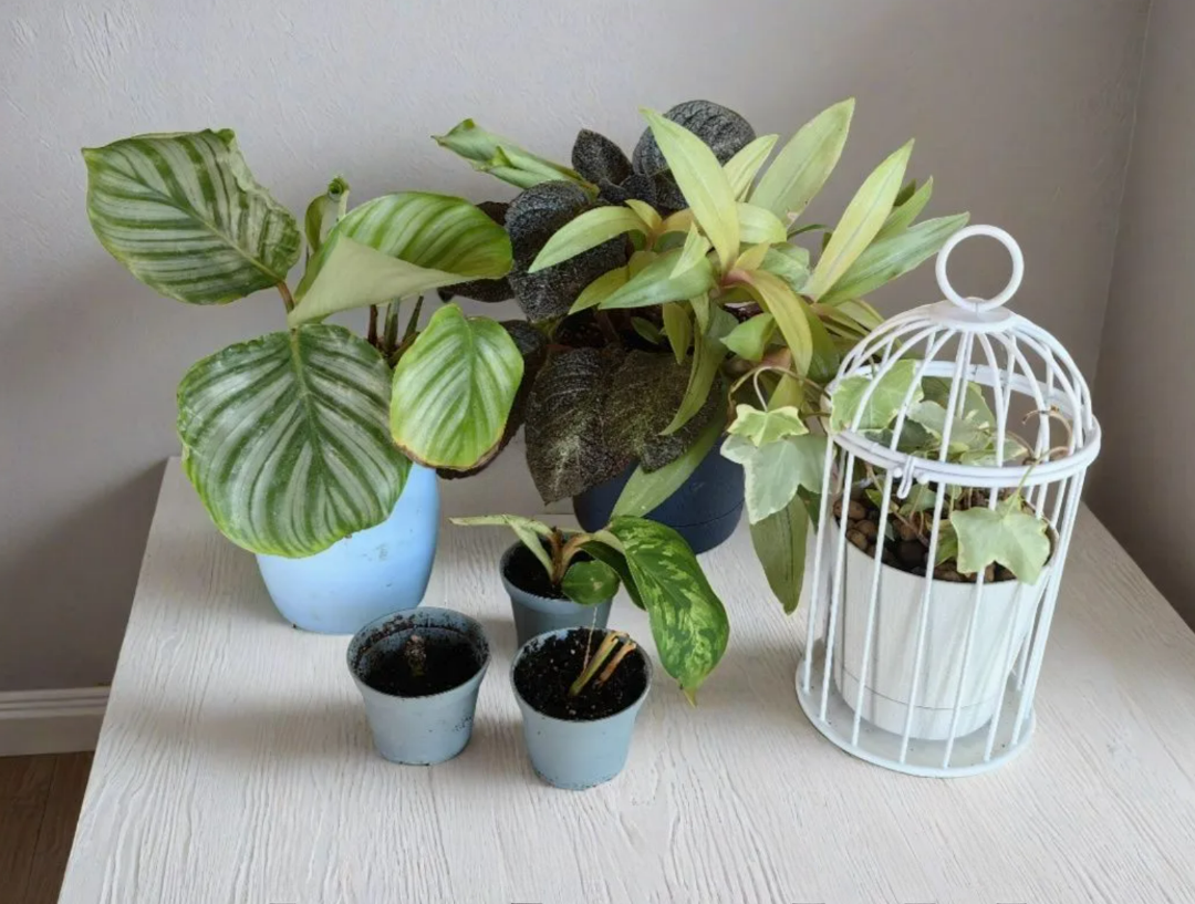 Нет, друзья, не все у нас безупречно. Особенно подпортила статистику последняя голландская закупка, которая ехала почти две недели Почтой. Тут четверо из пяти заказанных в категории реанимашек разной степени тяжести. Но есть парочка и помимо этой неудачной посылки. Вот с них и начнем. Живет у меня с весны Калатея Орбифолия. Приехала с коричневыми краями листьев, без грунта две детки. Одна так и чахнет, вторая пытается расти. Живет Орбифолия на фитильном поливе, новые листья от более сильной детки раскрываются, но какие-то пожеванные, хоть и без коричневых подсыханий. Почти все старые листья я ей обрезала, остался один на слабой детке. Растет она у меня в практически грунте для кактусов, там процентов 40 АгроБалта и остальное разрыхлители. Даю иногда пересыхать воде в стакане. Но за четыре месяца она могла бы выглядеть сильно лучше. Вот тут видно обе детки. Слабенькая дает два новых листа, у сильной один разворачивается и два на подходе. Видно как пожеван лист. Вроде новые более ровные.