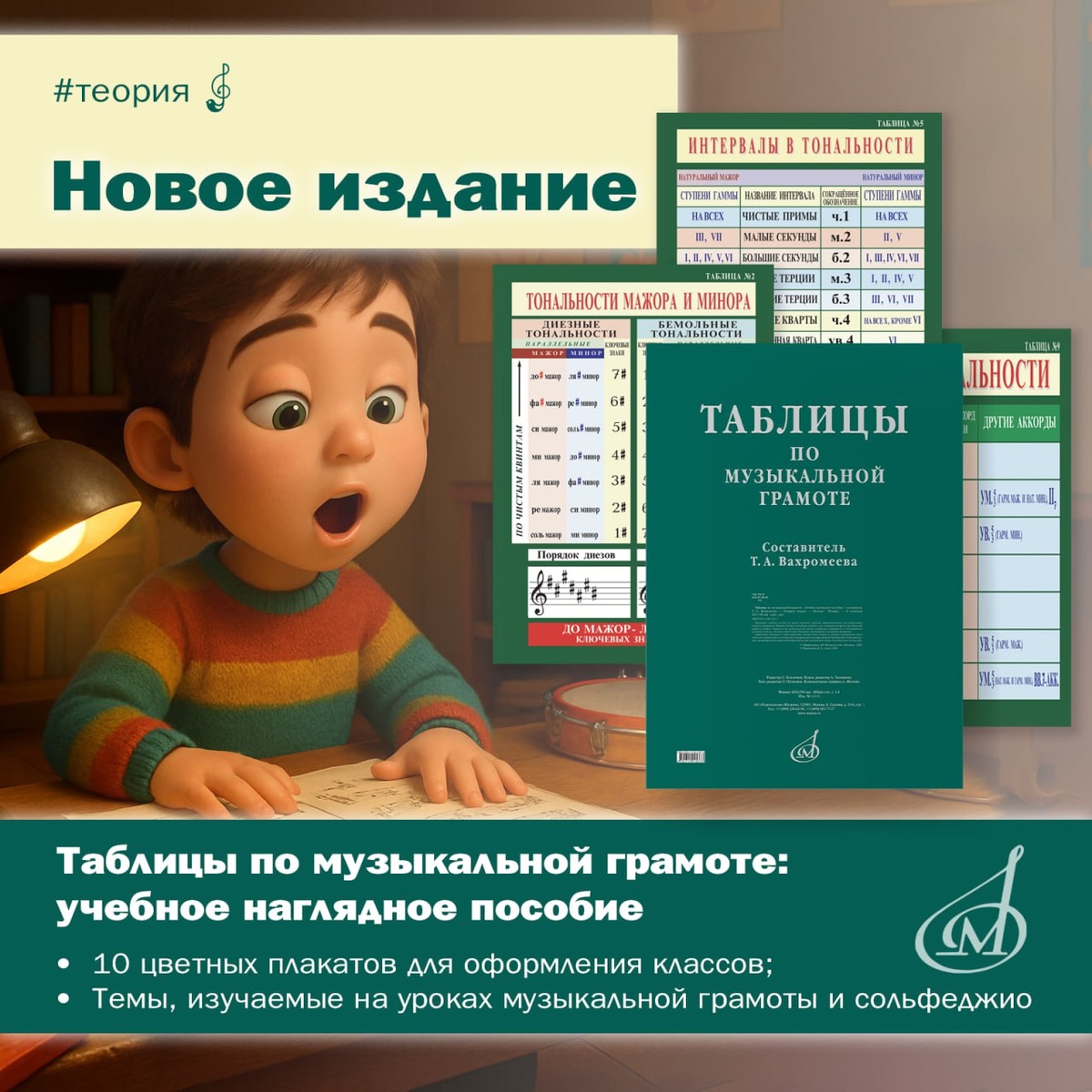 🆕 Таблицы по музыкальной грамоте. Издание второе Учимся музыкальной грамоте легко! 🟢Наглядные учебные пособия давно и прочно вошли в корпус педагогических материалов. Они неоднократно доказали свою эффективность: ведь в максимально сжатой форме отражают суть практически любого изучаемого объекта. Функции, которые выполняют наглядные пособия, чрезвычайно важны. Например: ✔️содержат точные визуальные описания, существенно облегчающие понимание сложных абстрактных понятий; ✔️способствуют формированию системного мышления; ✔️развивают воображение; ✔️экономят время при объяснении нового материала; ✔️позволяют разнообразить формы работы на уроке и многое другое. 📌Настоящий комплект таблиц по музыкальной грамоте предназначен для оформления пространства ДМШ, ДШИ и ДХШ (соответствует федеральным государственным требованиям). Таблицы можно разместить как в классах, так и в зонах отдыха. Каждый из 10 плакатов посвящён одной музыкально-теоретической теме, где рассматриваются гаммы, тональнос
