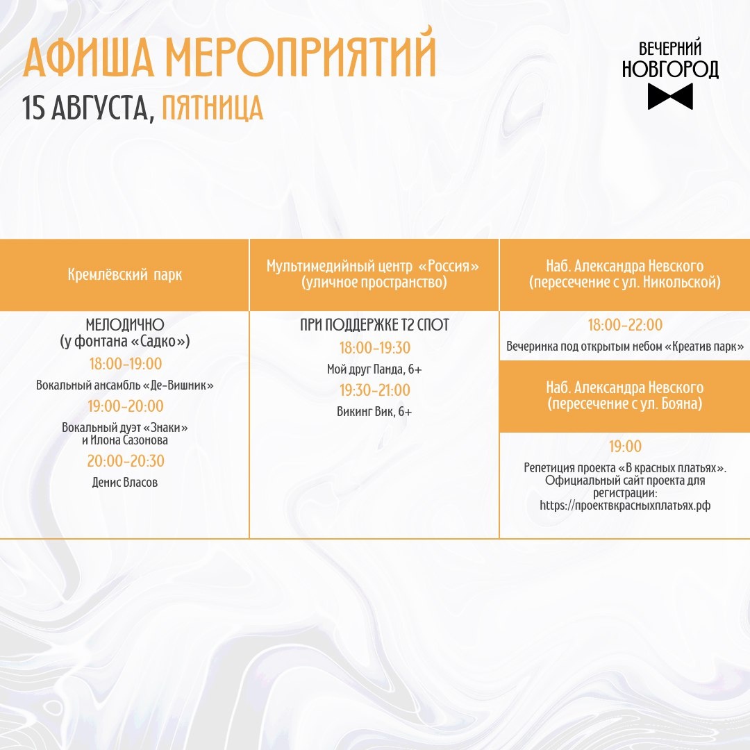 ☀️ А вот и афиша мероприятий «Новгородского лета» на эти выходные
