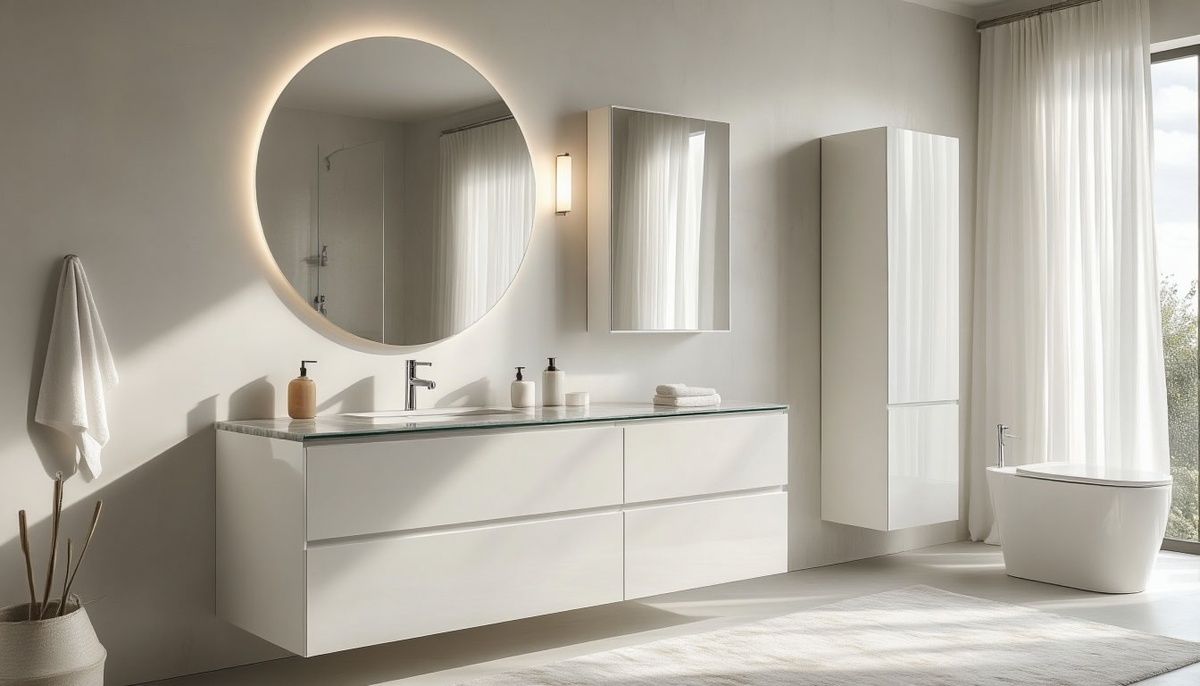 Оценка пространства — первый и важнейший этап выбора гарнитура. Необходимо тщательно измерить площадь ванной комнаты, учесть расположение коммуникаций, дверей и сантехники. Важно оставить минимум 60 см для комфортного передвижения.