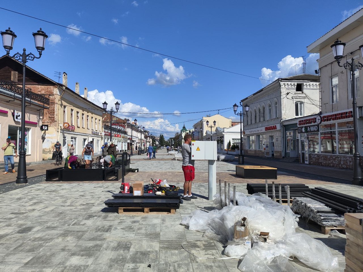 В Тамбове на Коммунальной после завершения реконструкции будут проводить городские праздники. Именно с этой целью и установлены «непонятные» серые ящики. Их предназначение объяснил глава горадминистрации Максим Косенков: это электрические щиты, которые аккуратно встроят в общий дизайн. « При реконструкции нашего Тамбовского Арбата старались максимально учесть мнение горожан. В итоге получили концепцию, которая здесь и реализуется. Звучало мнение, что должно быть больше зелени. Но нужно понимать: непосредственно в землю здесь растения сажать нельзя, потому что на этом отрезке Коммунальной проходит много коммунальных сетей. Но мы хотели сделать улицу живой: удобной для вечерних прогулок, для отдыха и в то же время, чтобы здесь была возможность выступать уличным музыкантам, проводить городские мероприятия», – прокомментировал Максим Косенков. При реализации проекта благоустройства Коммунальной нюансов было много, подчеркивает градоначальник. Большинство если не привычные, то, как миниму