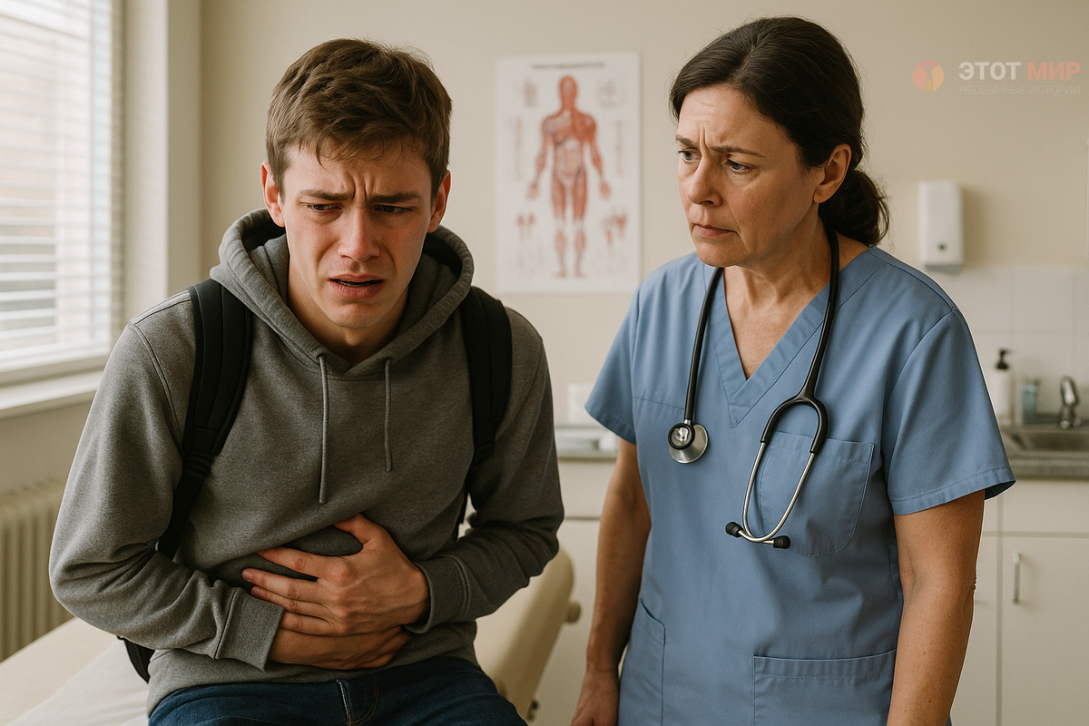 Всё началось на уроке математики. Вдруг его скрутило острой болью в животе. Пот струился по лицу. Он кое-как дошёл до медпункта.