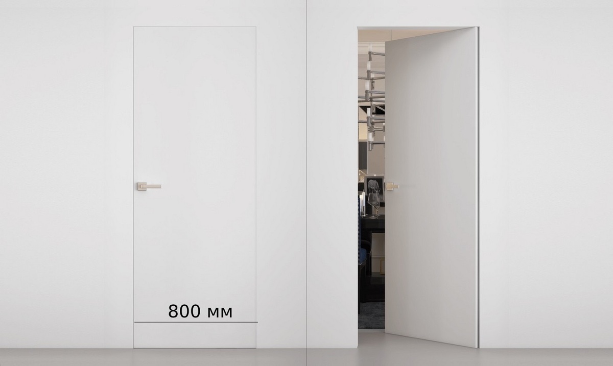 Решение: на стадии планировки проверьте открывание с учетом ширины каждого дверного полотна, чтобы двери не пересекались и открывались минимум на 100 градусов. Если изменить положение проёма уже невозможно, продумайте открывание в разные стороны. Для дверей-невидимок особенно важно заранее определить сторону открывания, так как петли и скрытая коробка врезаются на заводе. Стандартная ширина дверного полотна — 70-80 см, при этом готовый проём после монтажа может быть от 60 до 90 см. Если сделать меньше, будет неудобно проходить и невозможно занести мебель или холодильник; если больше — полотно буд