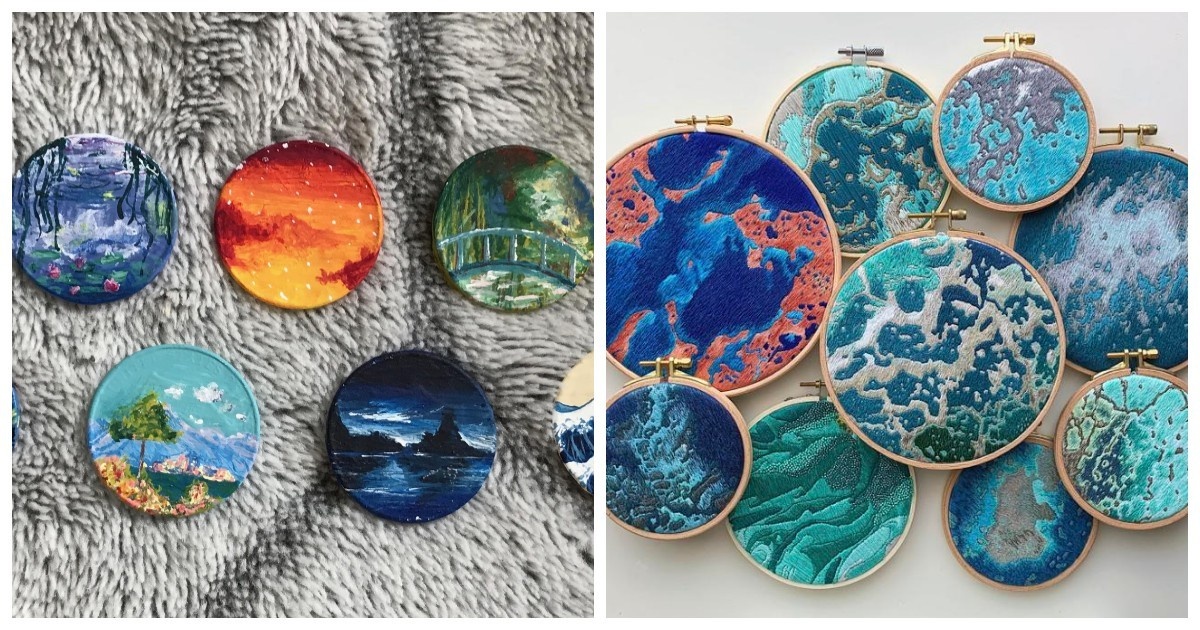7. Художник создал коллекцию мини-копий известных картин, каждая из которых написана акрилом на пенни
