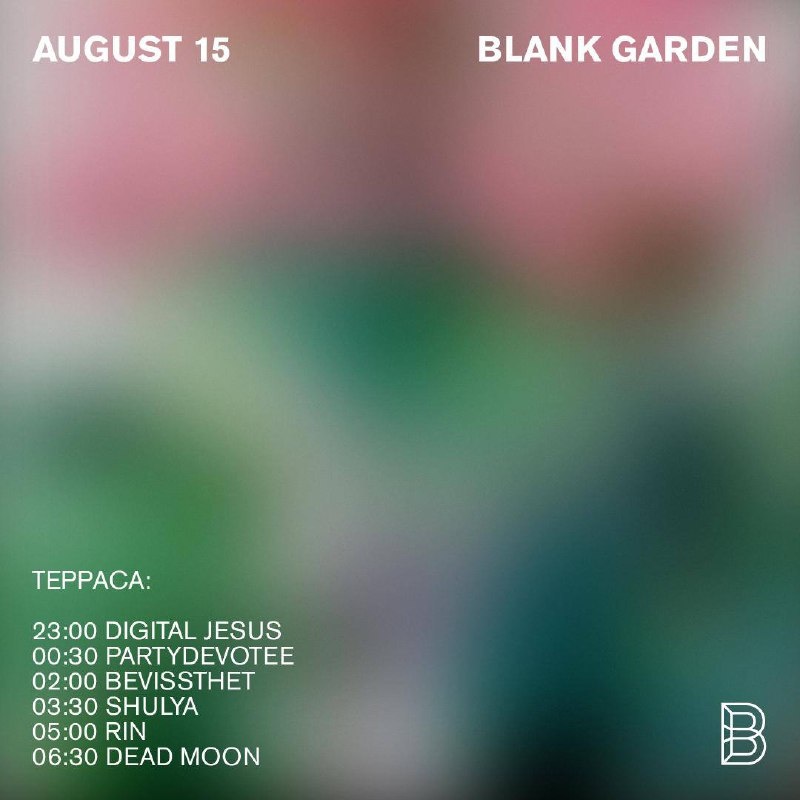 Лето скоро кончится, но сад ещё полон звука. Сегодня с нами красивейшая тусовка, и речь не только про людей за пультом, но и про вас. С 23:00 — 00:00 — фри-вход 🎫 blankclub.ru 📆 15 августа, 23:00 📍Blank, Санкт-Петербург, Арсенальная наб.1