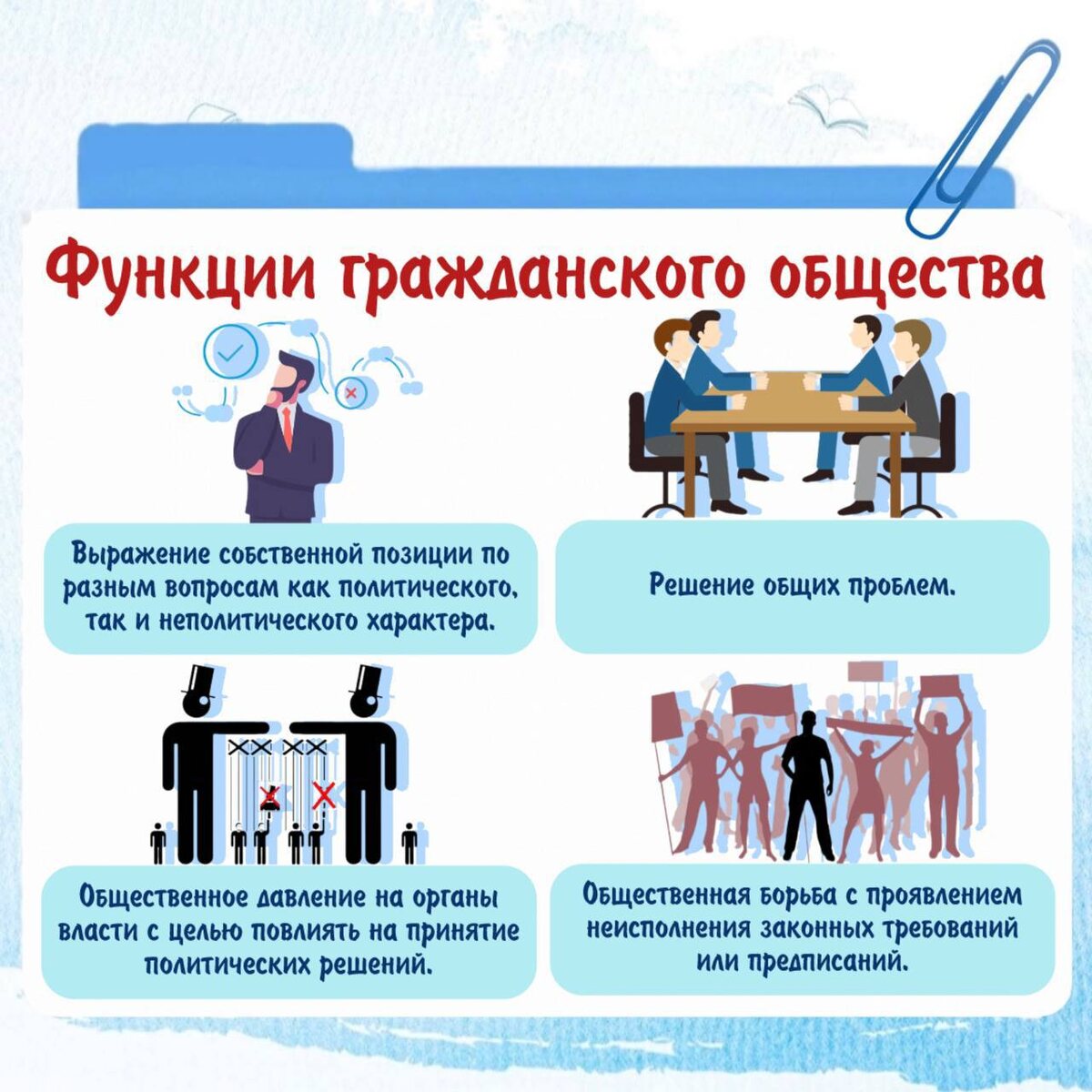 📎Гражданское общество не может возникнуть спонтанно: это длительный процесс, в ходе которого закладываются основы формирования гражданского общества. ✅✅✅Обязательно запомните функции гражданского общества! #полезноеобщага