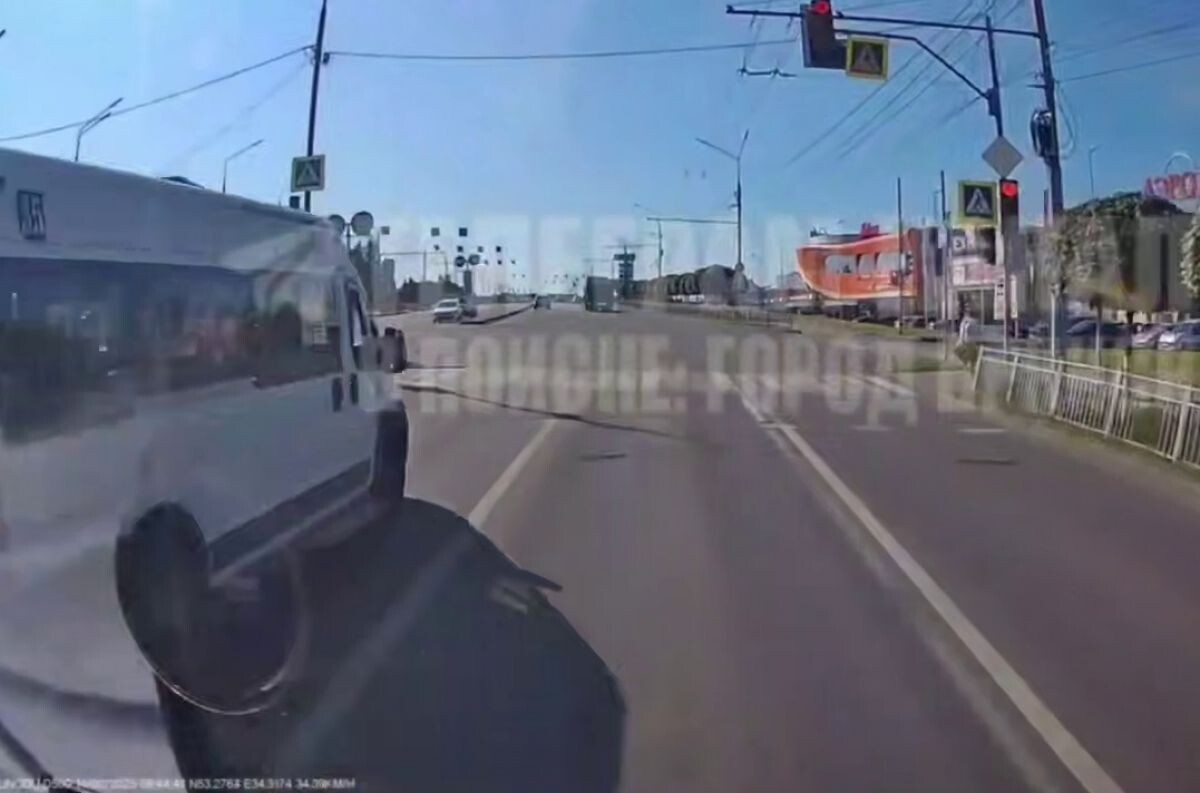 Брянский маршрутчик с пассажирами проехал на красный через оживленный перекресток