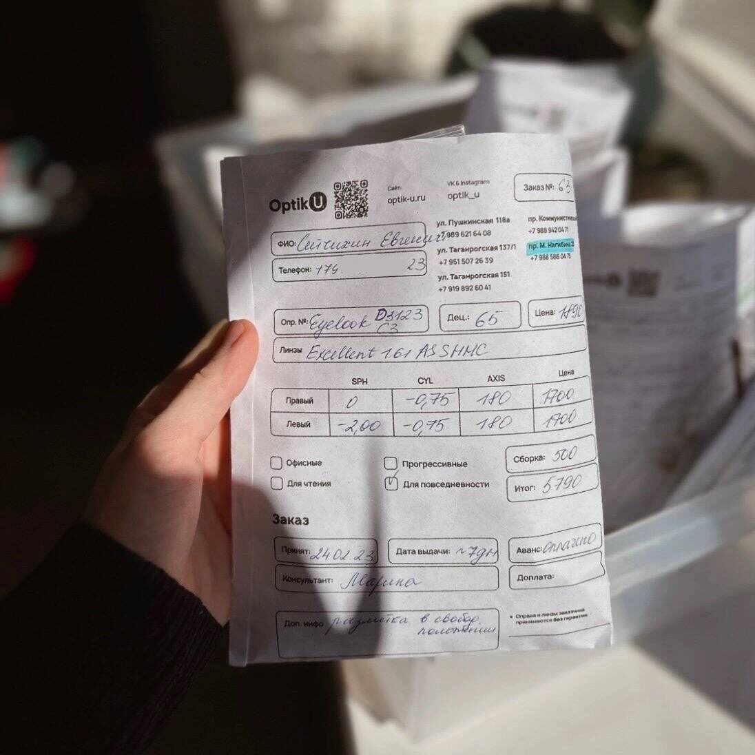 К нашим заказам идут конверты с рекомендациями по уходу за очками💜