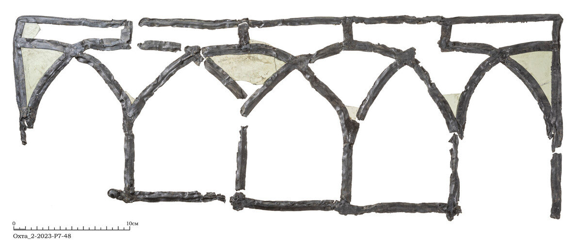 «Витражи нам, археологам, попадаются при раскопках достаточно редко. Особенно высокой степени сохранности. Витражи в первой половине XVII века, как правило, обрамляли в свинцовый профиль. Свинец в то время был очень ценным материалом. Из него могли делать различные вещи, например, пули, грузила. Поэтому даже когда окно с витражом приходило в негодность, свинец использовался повторно. Соответственно, от витражей практически ничего не остается», – рассказывает руководитель городской археологической экспедиции ИИМК РАН Андрей Городилов.