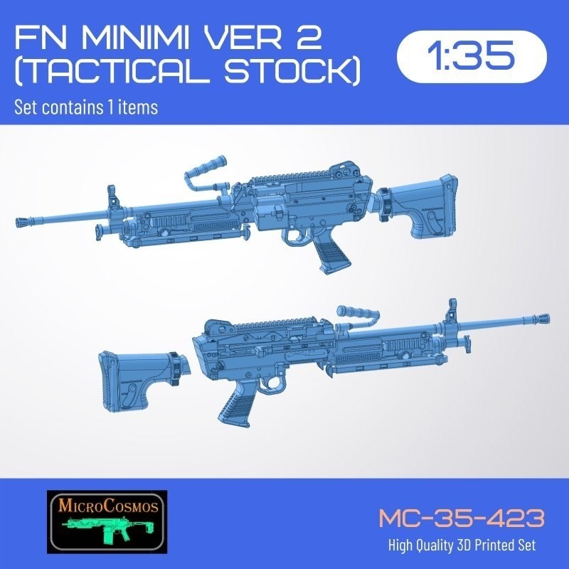 Греческая 3D MicroCosmos выпустила на 3D-принтере модель бельгийского 5,56-мм ручного пулемета FN Minimi в масштабе 1/35: FN Minimi VER 2 (Tactical Stock) - каталожный номер МС-35-423
