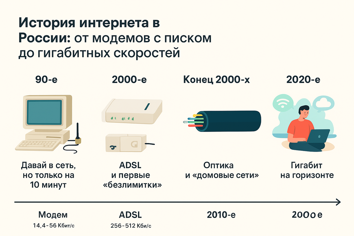 Давайте вспомним, как всё начиналось, и пройдём путь от модемного писка до молниеносных гигабит.