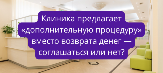 Когда процедура прошла неудачно или вызвала осложнения, некоторые клиники вместо возврата денег предлагают «исправить ситуацию дополнительной процедурой». Важно понимать, что это не всегда безопасно и юридически корректно. Соглашаться на «дополнительную процедуру» можно только после оценки рисков и юридической защиты. В противном случае вы рискуете потерять деньги и время, а проблема останется. 🎯 Хотите понять, как действовать в вашей ситуации?